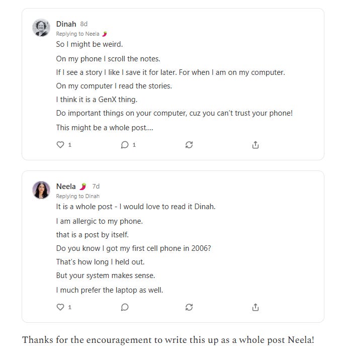 When I am on substack on my computer I enjoy it more. For now no substack on my phone is a good boundary.